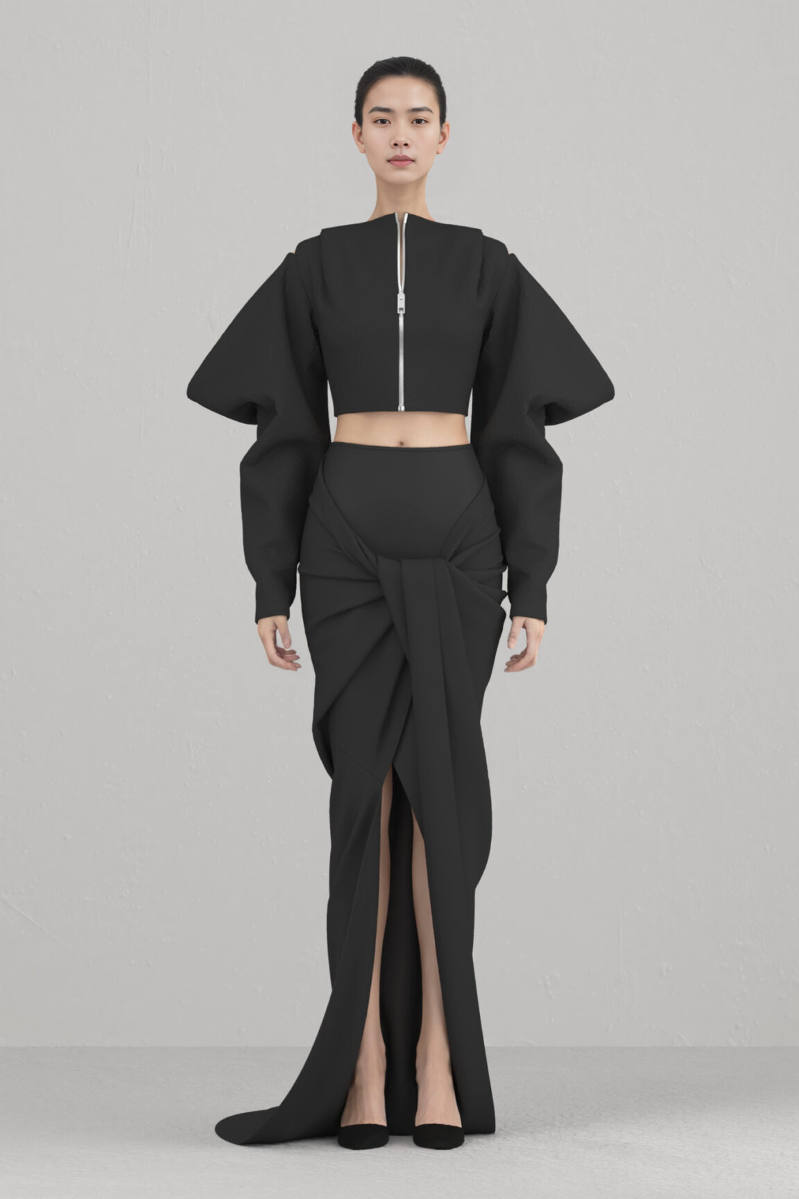 Black Twisted Draped Detailed Skirt with Side Zip